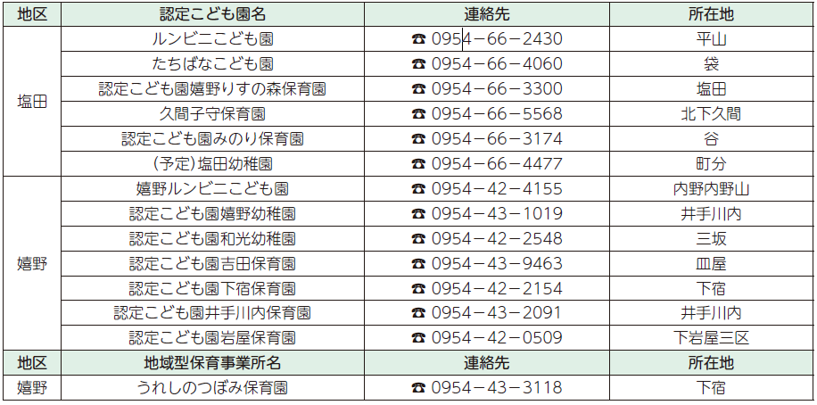 塩田庁舎子育て未来課 または 嬉野庁舎福祉課