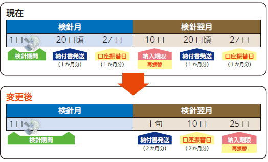 再振替:検針月の翌月25日(翌月10日に振替ができなかった場合)