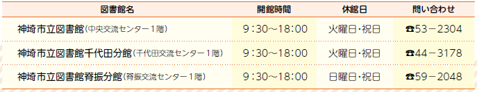 神埼本館・千代田分館のみ開催実物を図書館に展示中
