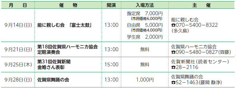 ※催物の内容などについては、主催者へお問い合わせください