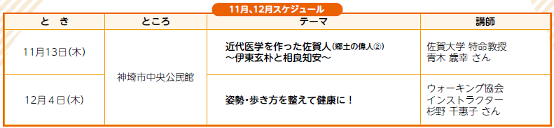 ※悪天候等で予告なく開催を中止したり、講義内容を変更することがあります。市のホームページや電話で確認の上、ご参加ください。