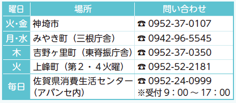 消費生活相談窓口の広域連携をしているので、近隣市町でも相談できます。