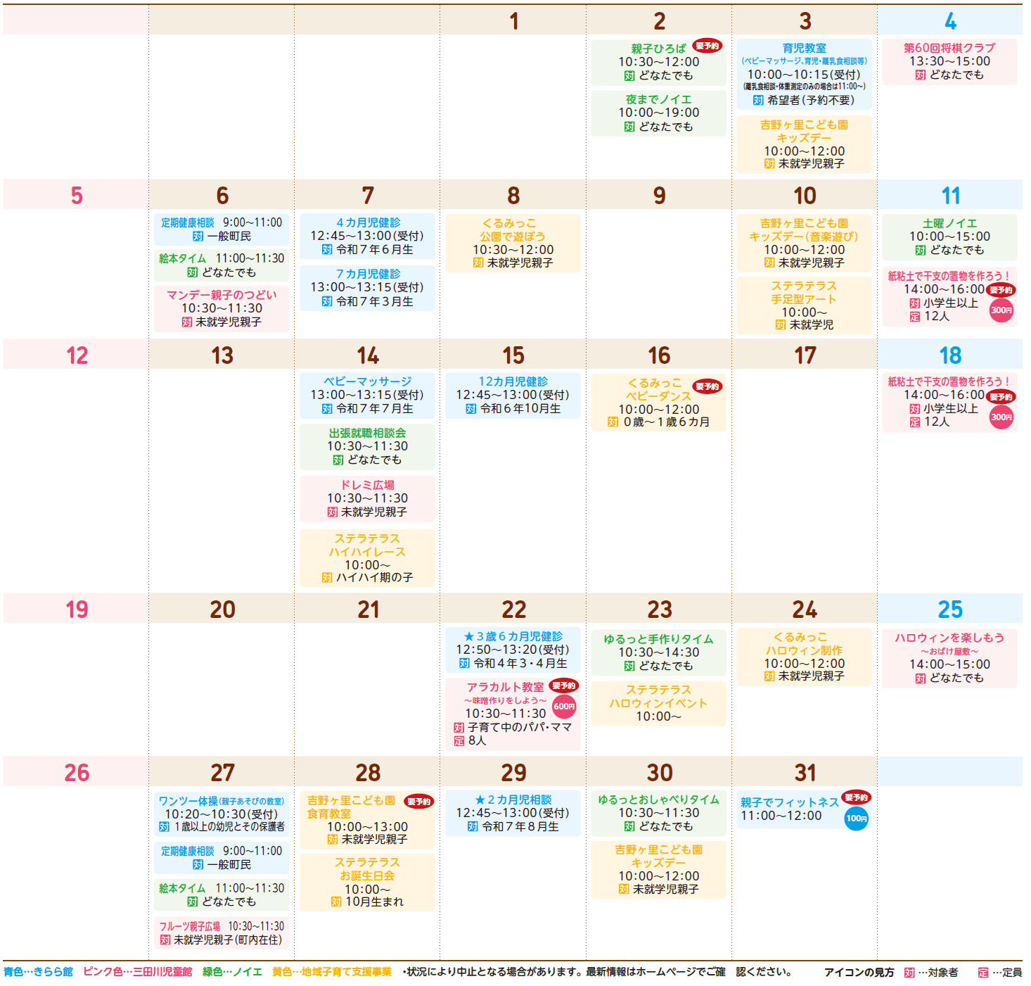 〇25日(土)「ハロウィンを楽しもう」は、昨年復活した「おばけ屋敷」。児童実行委員や協力隊のみんなで楽しいものにするので、ぜひ気軽に参加してください。