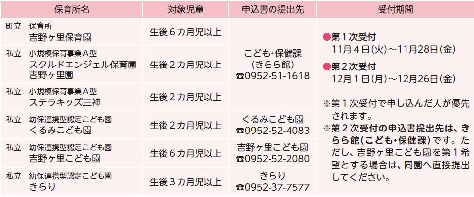 ・「勤務先に近い」等の理由で他市町にある認可保育所の利用を希望する場合も、きらら館に申し込みください。