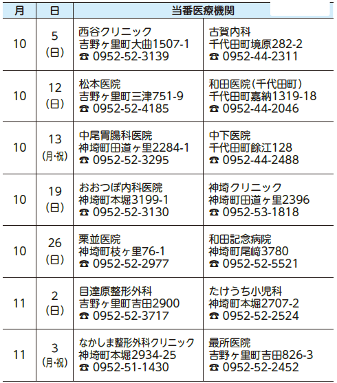 くらし 休日在宅当番医 6/45 前の記事 次の記事 発行日 : 2025年10月01日 自治体名 : 佐賀県吉野ヶ里町 広報紙名 : 広報よしのがり 2025年10月号 診療時間9:00〜17:00 Tweet シェアする 令和8年4月入園分 保育園入園申し込みの受け付け 3カ月で体重-3kg!両施設で減量コース開催!
