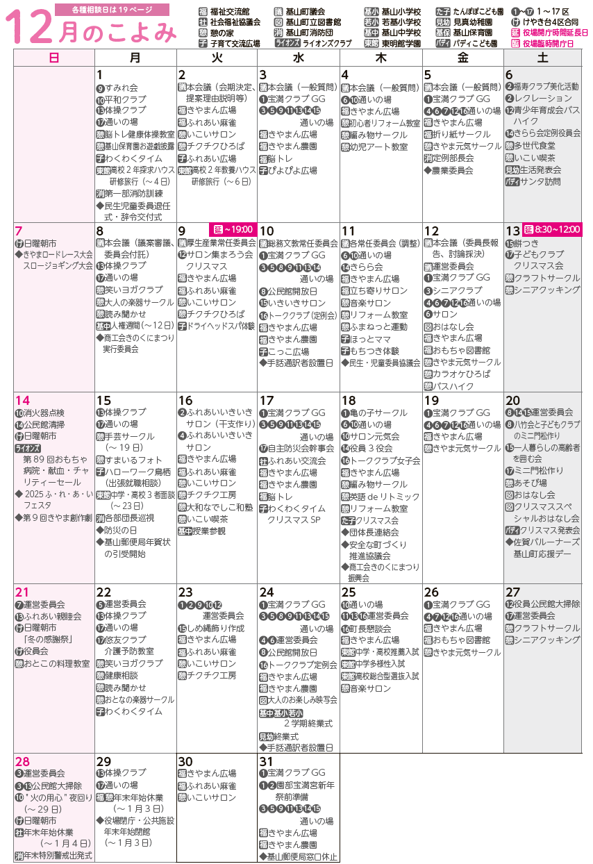 くらし 12月のこよみ 28/43 前の記事 次の記事 発行日 : 2025年12月01日 自治体名 : 佐賀県基山町 広報紙名 : 広報きやま 2025年12月号 Tweet シェアする まちの話題 町営住宅の空室状況