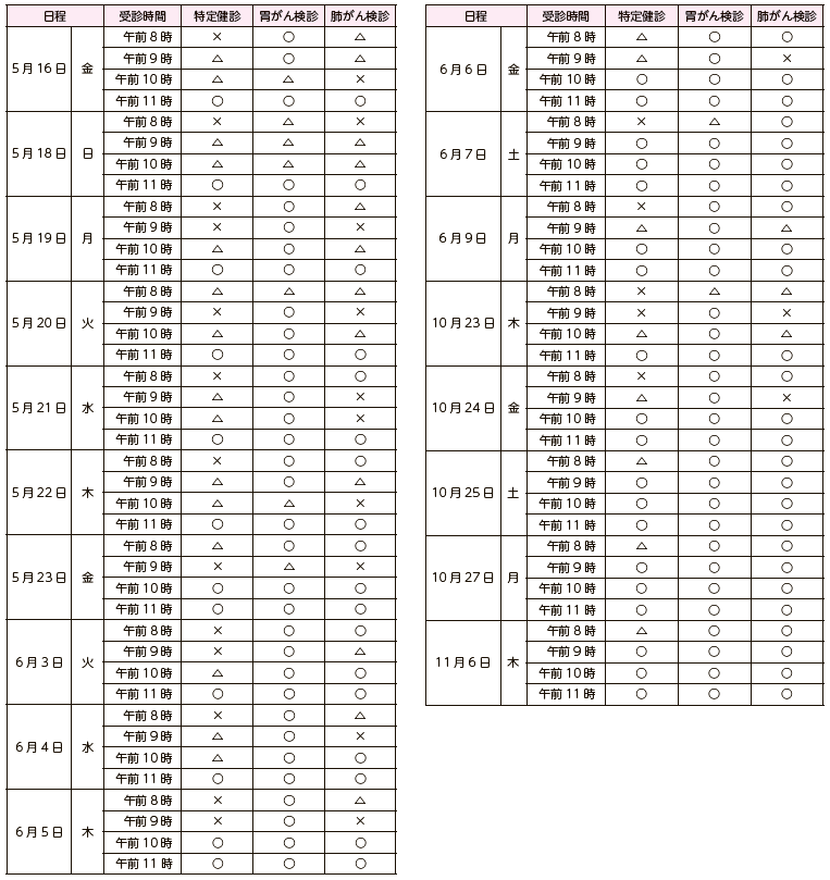 5月16日(金)から保健センターで総合健診(特定健診・各種がん検診)が始まります。