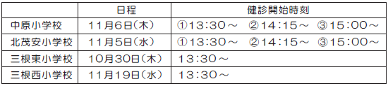保護者の方が付き添いの上、該当校区の日程で受診をお願いします。