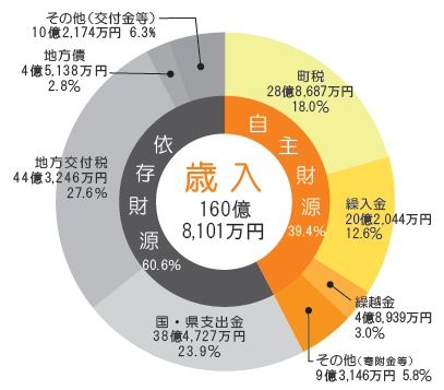 歳入額は160億8,101万円で前年度と比べ4億7,226万円の増となりました。