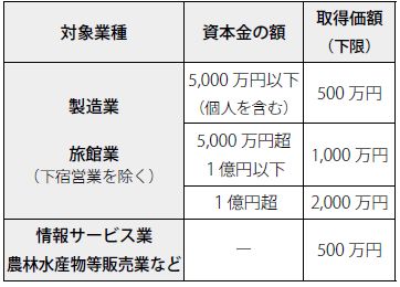 対象価額:事業用設備の取得額が次の表の金額以上の場合。