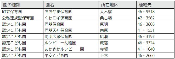 ・新規入所希望者および町外の園に入所中の方→子育て支援課(福祉保健センター内)