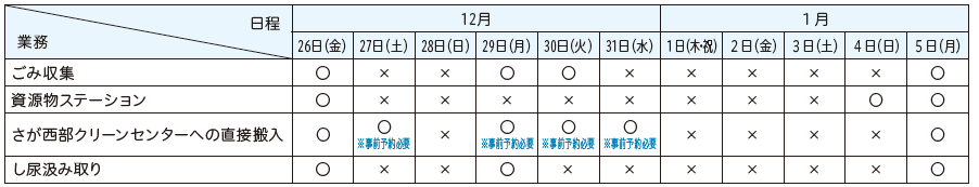 年末年始の収集業務を、下記のとおり休業させていただきます。