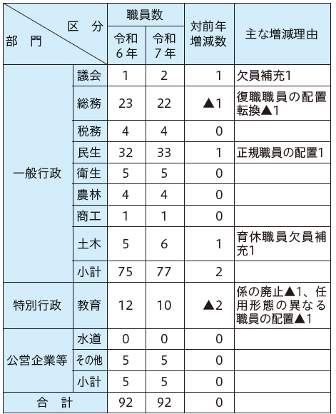 (注)職員数は、技能労務職7人、再任用職員3人を除いています。