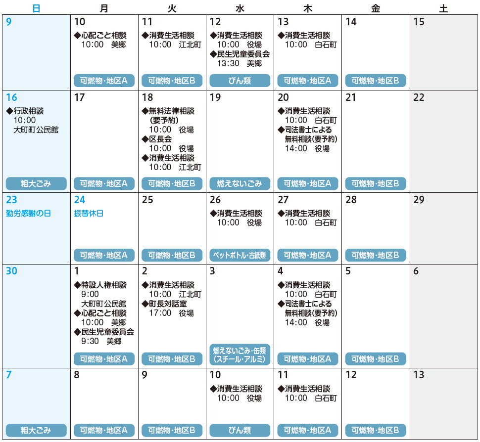 ◆消費生活相談…大町町【電話】82-3112(企画政策課)、江北町【電話】86-5615(地域振興課)、白石町【電話】84-7123(商工観光課)