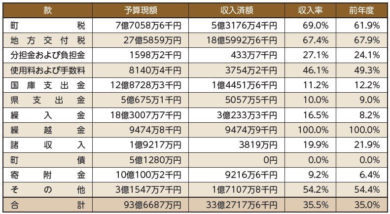 町では、町民のみなさんに町の財政運営状況について知っていただくために、年2回財政状況を公表しています。今回は、令和7年度の上半期(4~9月)の予算執行状況をお知らせします。