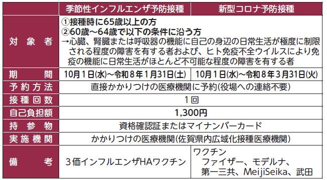 10月から季節性インフルエンザワクチンおよび新型コロナウイルスワクチンの接種が始まります。ワクチン接種には、発症予防・重症化予防の効果があるとされています。