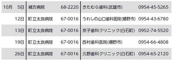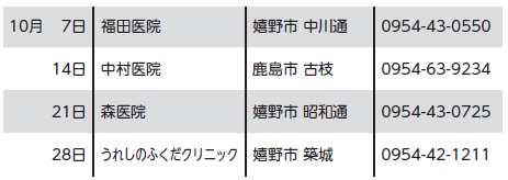 ※変更になる場合がありますので、受診の際は事前に在宅医、または杵藤地区消防本部救急医療情報案内(【電話】0954-22-4207)へ電話で確認してください。