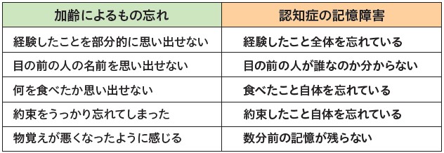 ◇「加齢によるもの忘れ」と「認知症の記憶障害」の違いの例