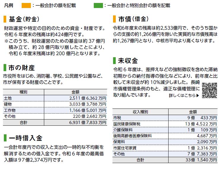 各会計の収支のほか、市の財産・市債残高・一時借入金は以下のとおりです。