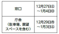 「広報ながさき」12月号16ページに掲載していた「年末年始の手続き・問い合わせ先」の庁舎利用に関する掲載内容に誤りがありました。正しくは、次の期間の利用ができません。