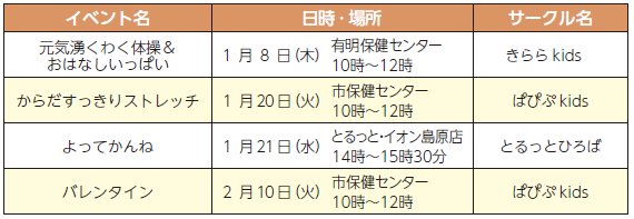 どなたでも参加できる育児サークルは、親子で楽しみながら子育てができるよう、情報交換と友だちづくりのきっかけとなる場を設けて、参加者の交流を行っています。