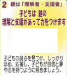 自分の子どもとしっかり向き合い、子どもの些細な変化を見逃すことなく、愛情込めた「ほめ方、叱り方、励まし方」に心がけながら育てましょう。