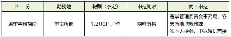 問合せ・申込:選挙管理委員会事務局、各支所地域総務課