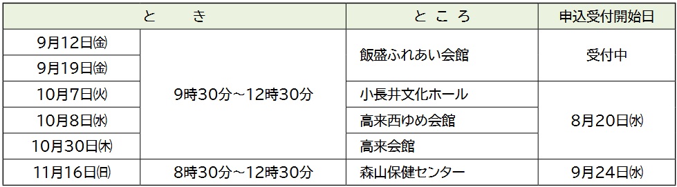 ※各支所地域総務課、健康推進課、森山保健センターへ要申込