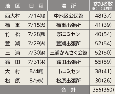 市内8地区で地区別ミーティングを開催しました。市からの事業説明のほか、来場した皆さんから市の施策や地域課題などに関して多くの意見・提言をいただきました。