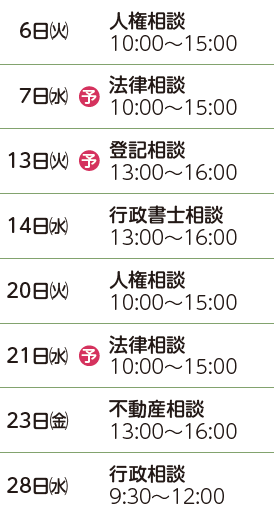 ※法律相談は、1つの相談内容につき1回限りです。