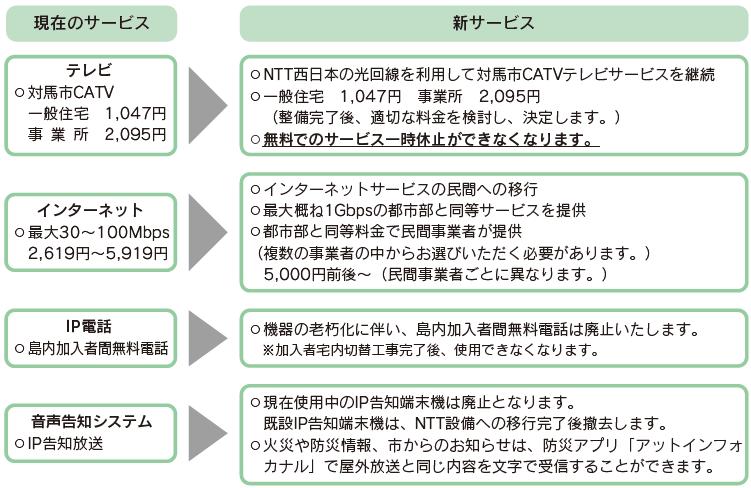 これまでの対馬市CATVケーブルを利用したテレビ、インターネット、IP電話サービス終了