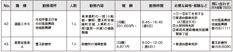 ●各職種の詳細(募集要項)および所定の申込書は、対馬市ホームページに掲載しています。担当課でも受け取れますので、問い合わせ先へご連絡ください。
