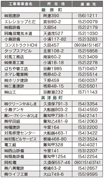 厳原町・美津島町…水道局水道課【電話】0920-52-0943