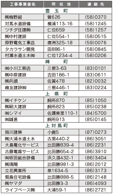◆対馬市水道局指定給水装置工事事業者一覧(令和7年12月1日現在)