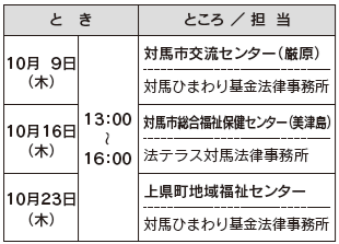 対馬市社会福祉協議会では、法律に関する相談会を開催しています。料金は無料です。