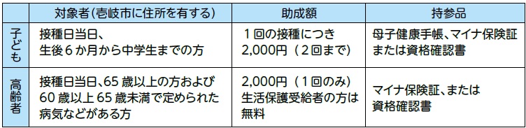 市では、インフルエンザ予防接種の接種費用の一部助成を行っています。