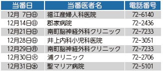 ※(土)の正午以降、(日)の18時以降は、五島中央病院【電話】72-3181、富江病院【電話】86-2131、奈留医療センター【電話】64-2014へ。