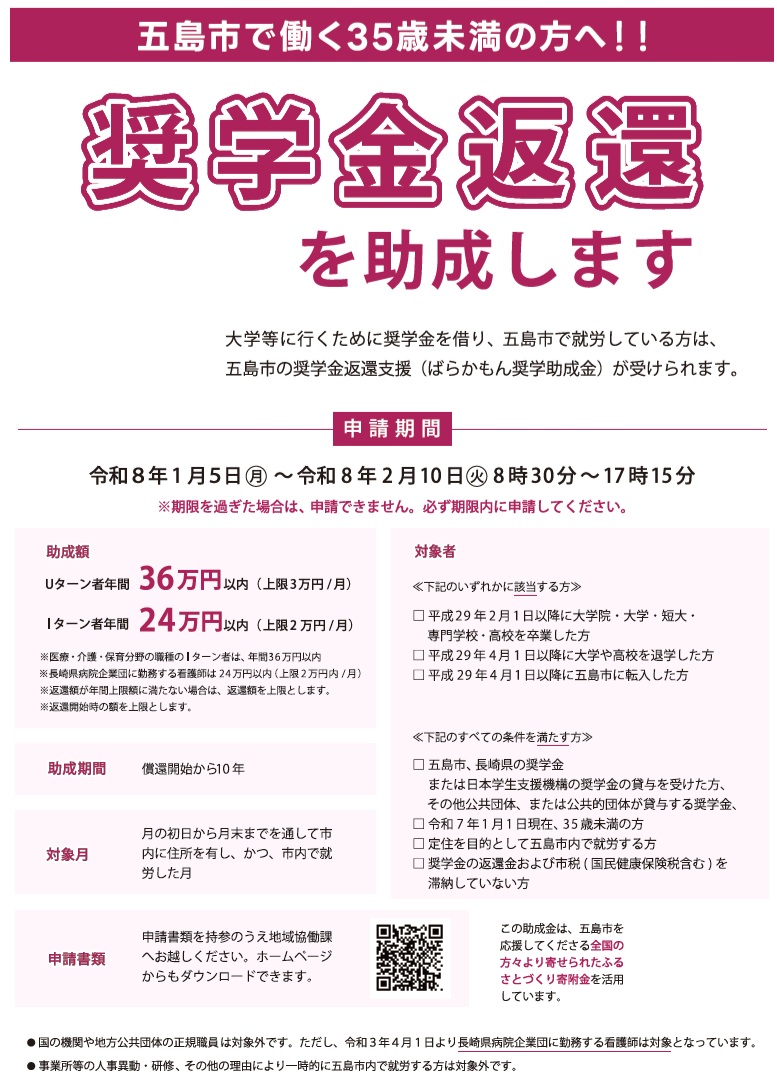 くらし 五島市で働く35歳未満の方へ!!奨学金返還を助成します 24/37 前の記事 次の記事 発行日 : 2025年12月01日 自治体名 : 長崎県五島市 広報紙名 : 広報ごとう 2025年12月号 問合せ:地域協働課移住定住促進班 【電話】76-3070 Tweet シェアする 暮らしの情報ーお知らせー(2) 期限迫る!!歯周疾患検診を受けましょう!