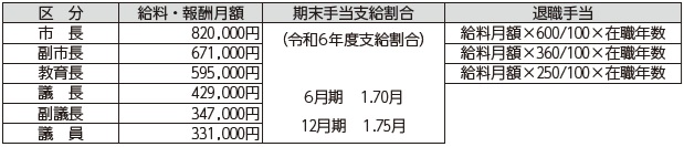 (6)特別職の報酬等の状況(令和7年4月1日現在)