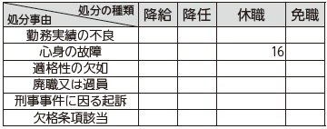 分限処分とは、職員が十分に職責を果たすことができない場合に、公務能率を維持するために行う処分をいい、降給・降任・休職・免職の4種類があります。
