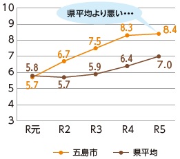 五島市は、島原市や平戸市など長崎県内7市と同じ類型に区分されています。