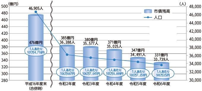 ・令和6年度は、新たに借り入れた借金が返済額を下回っているため、借金の残高は減少しています。