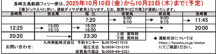 くらし 長崎五島航路フェリー便 ドックダイヤのお知らせ 32/35 前の記事 次の記事 発行日 : 2025年10月01日 自治体名 : 長崎県五島市 広報紙名 : 広報ごとう 2025年10月号 Tweet シェアする 五島市イベントカレンダー【10月・11月】 有人国境離島法の改正・延長の実現に向けた五島市総決起大会開催!