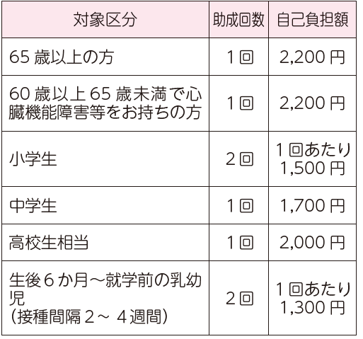 ・助成対象者のうち、生活保護受給世帯の方は、福祉事務所長が発行する証明書を提出すると、無料で接種できます