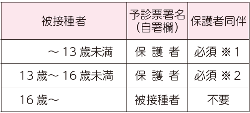 ※2 予診票に保護者が接種に同意する署名をしている場合に限り、保護者同伴を不要とします