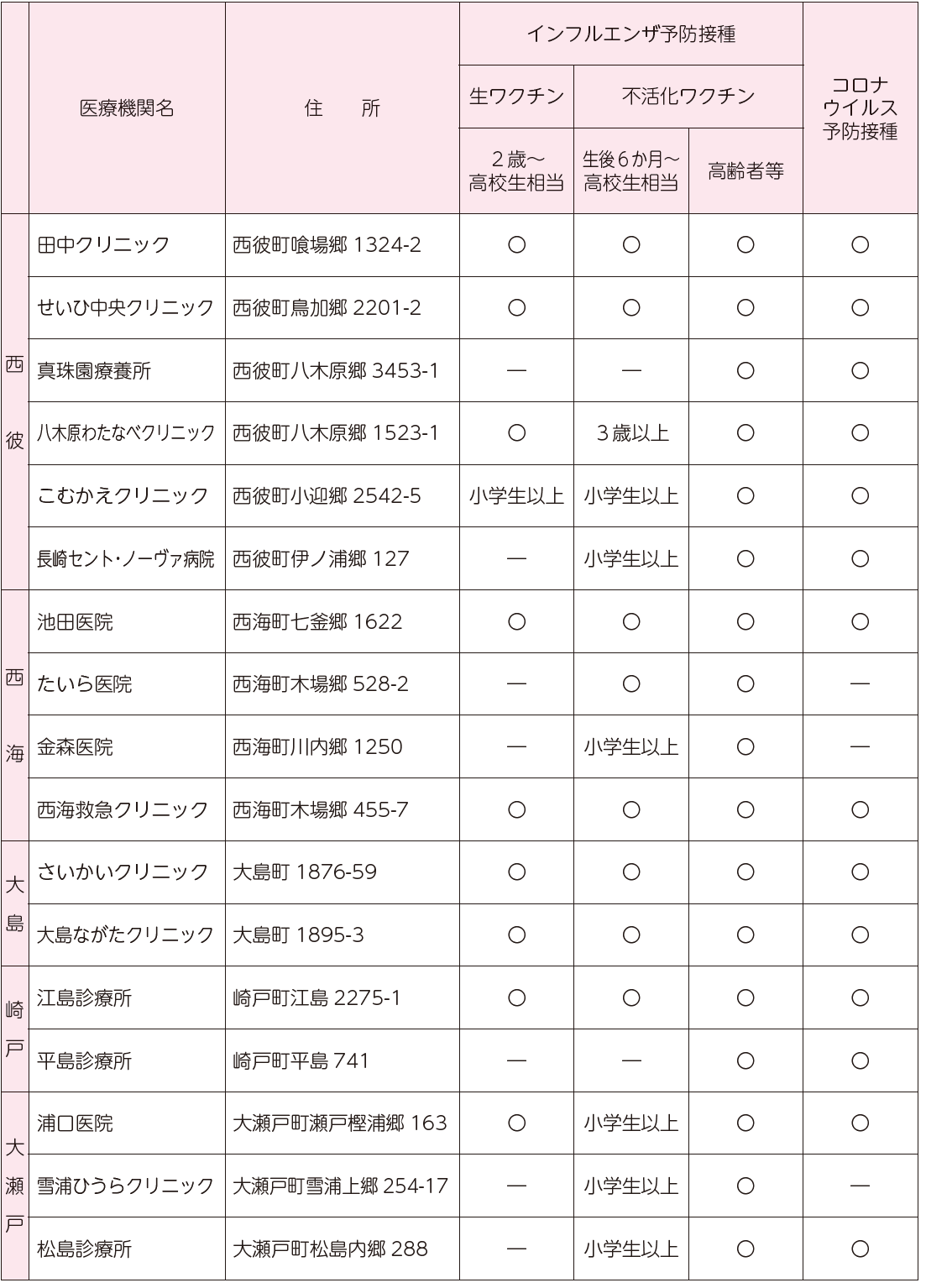 ※上記医療機関のほか、県内の広域予防接種事業等に加入している医療機関であれば接種可能です。詳しくは、接種を希望される医療機関へ直接ご確認ください