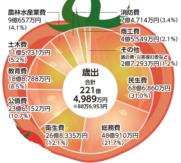 令和6年度の歳出決算額は221億4,989万円となり、前年度の決算額と比べると、7億1,488万円の減少となりました。