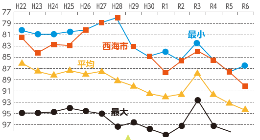 (西海市 令和6年度 90.3%)