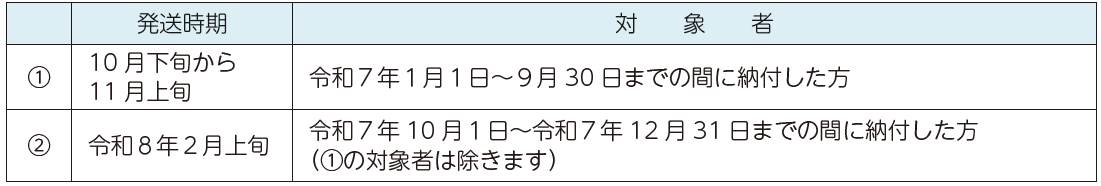 ※国民年金保険料を納付した時期によって発送時期が異なります
