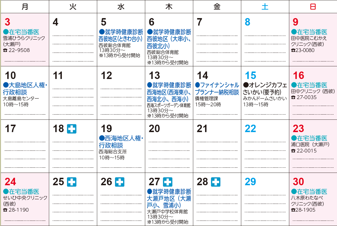 日曜日・祝日などの休日に受診できる医療機関です。カレンダーでご確認ください。